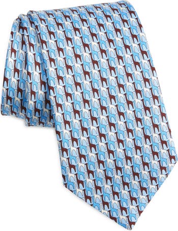 Giraffes gracefully perambulate across an Italian-crafted silk tie to bring a bit of understated whimsy to your business attire.