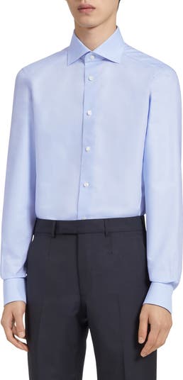Extra long-staple cotton is woven into a silky-smooth and wrinkle-resistant fabric, ensuring a polished look and comfortable fit for this button-up shirt.