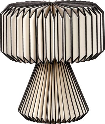 The Art Deco design of this modern accent lamp creates ambient lighting in the living room, home office or bedroom. Featuring a pleated paper shade and base, this lamp has an LED bulb for soft, warm light. The versatile design complements almost any interior.