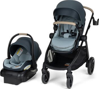 Why parents will love it: The easy-to-use travel system is suitable from birth, thanks to the option to click in the Mico Pro infant car seat or transform the Zelia Pro stroller's seat into a lay-flat pram bassinet. As baby grows, the stroller transitions smoothly between five modes including parent-facing car seat caddy, reversible carriage and reversible stroller offering maximum versatility in a lightweight design that opens easily and collapses flat. The bumper bar swings to the side to easily get your baby in and out of the stroller seat. A height-adjustable handle is adaptable for drivers small and tall, while the extralarge underseat storage basket holds all the essentials. Contoured, ergonomic car seat handle curves around your hip for a more comfortable carry. Faux-leather accents on the stroller and car seat add style and comfort.