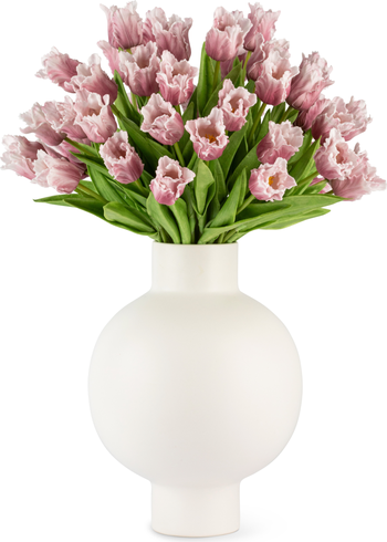 The Zélie RealTouch Tulip Arrangement features a sculptural white vase with a rounded body, subtle pedestal base, and a narrow raised lip that adds a refined finishing touch. Filled with 48 soft-to-the-touch RealTouch parrot tulips, each bloom is beautifully lifelike and artfully arranged. Striking yet understated, Zélie brings effortless elegance to any space—whether as a centerpiece, an accent, or a gift that leaves a lasting impression. A lasting luxury, timeless and unrivaled.