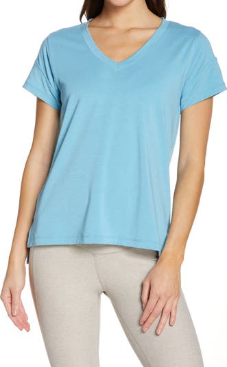 I actually bought five of these, one at a time, after I tried the first tee and found that it fit me perfectly and was extremely flattering (for an older fit woman in her sixties, 5'7" and 140 lbs). I will wear them to the gym and also at home for the ultimate in comfort. I love the easy fit and color(s). Not all of Zella tops look good on me, but particular top makes me feel slim and pretty.