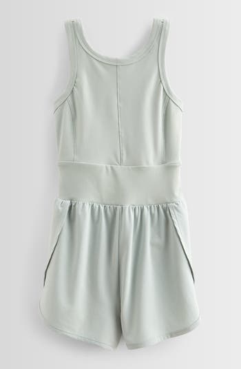 They'll have plenty of room to run, jump and play in a sporty romper topped with a soft and stretchy bodice paired with lightweight woven shorts.