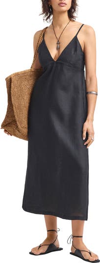 Cut from lightweight linen, this summery cover-up maxi is made with a deeply dipped neckline and accented with comfortable back smocking.