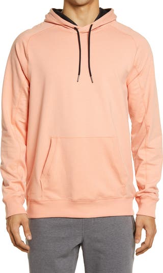 Stretchy cotton-blend fleece brings superior comfort to a sweatshirt sporting a breathable mesh-lined hood and raglan sleeves that offer room to layer.