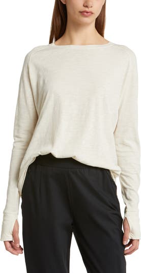 This relaxed long-sleeve T-shirt refuses to stay in the gym, so stock up and have something to wear to lunch after your workouts.