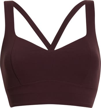 Crisscrossing back straps give freedom of movement to this luxuriously stretchy sports bra made with moisture-wicking tech.
