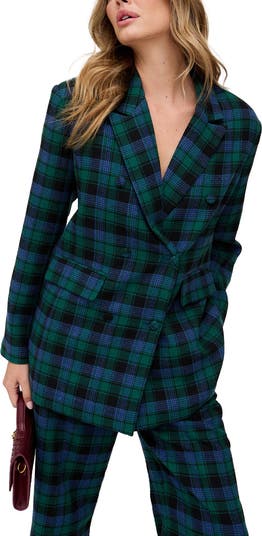 Lily and Lionel London Zena Double Breasted Prince Of Wales Check Print Jacket, Main, color, Blue