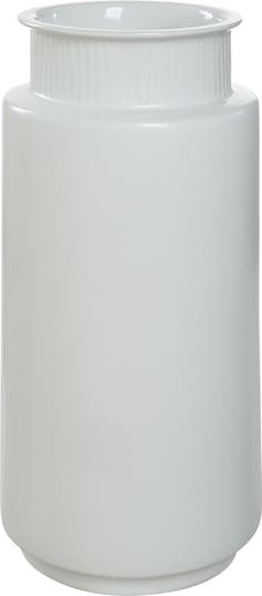 Clean, simple lines bring effortless versatility to a vase shaped from glazed porcelain that holds dried arrangements or makes a smart objet d'art on its own.