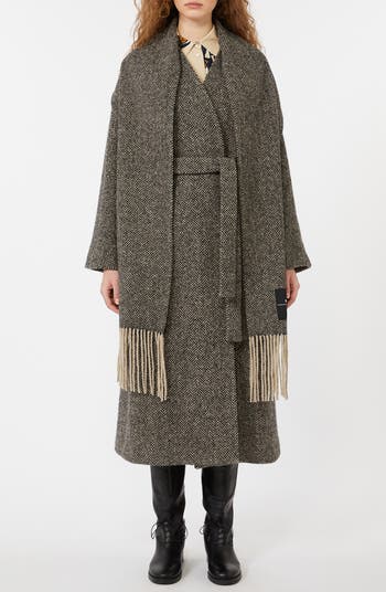 Zenica Scarf Detail Herringbone Tweed Wool Blend Coat