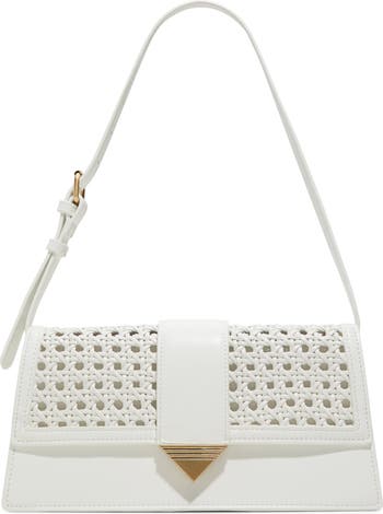 Goldtone hardware accentuates the woven flap of this contemporary faux-leather bag that's ready to elevate any look.