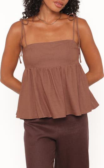 Sweeten your day-to-night vibe in this linen-enriched babydoll cami topped with slender adjustable tie straps.