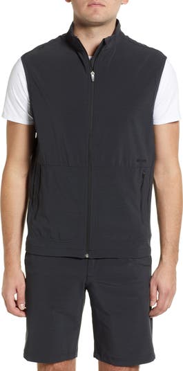 A high-performance golf vest designed in four-way-stretch fabric features a durable water-repellent finish and strategic venting for enhanced comfort.