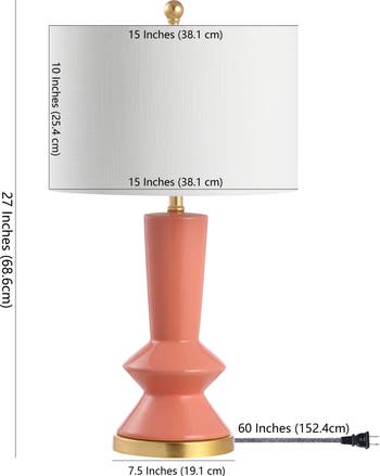 This lamp's angular shape and fresh coral color will add snappy style to your mid-century modern interior. Two lamps would make the perfect pair for a bedroom, living room, or entry console. The retro shape adds a vintage look, and gold fittings satisfy your inner Maximalist. Includes an energy-saving LED bulb.