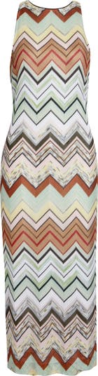 Iconic since the '60s, Missoni's signature zigzags bring kaleidoscopic color to this curve-contouring midi dress made with hand-spun yarns from the maison's Caperdoni loom, fusing the flexibility of knitwear with the structural integrity of woven fabrics.