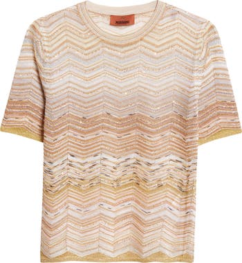 Iconic since the '60s, Missoni's signature zigzags get glitzed up on this fitted sweater shimmered with sequins and twinkling metallic threads.