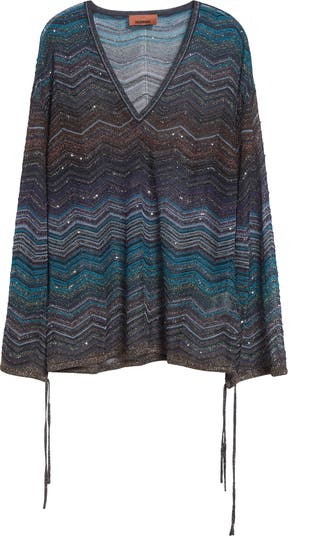 Iconic since the '60s, Missoni's signature zigzags get glitzed up in this sequin-dazzled sweater with drawstring ties that let you turn up or tone down the volume of the sleeves.