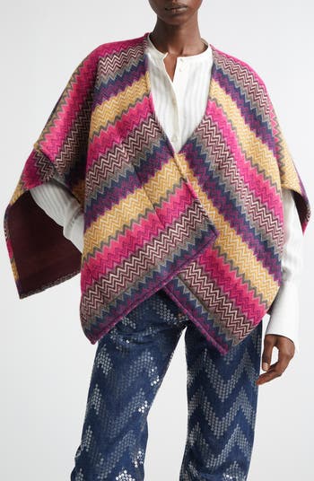 Iconic since their '60s debut, Missoni's retro-eclectic zigzags bring the glitz to a vibrant cape warmed with a bit of wool and alpaca.