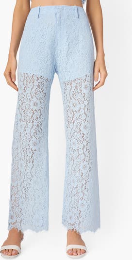 Bring a bit of everyday romance to your look with these flowy wide-leg pants fashioned from dainty floral lace.
