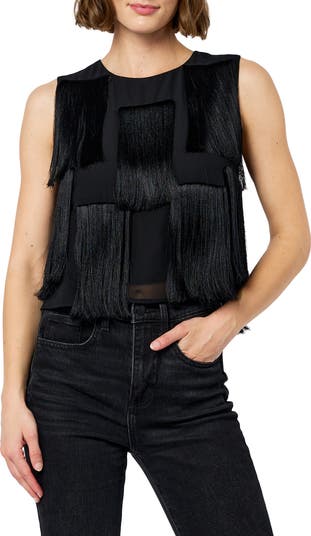 Swingy fringe adds texture and movement to this lively sleeveless top.