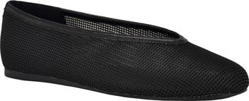 Tonal logo hardware subtly brands the heel counter on a streamlined ballet flat featuring a slender topline and airy mesh upper.