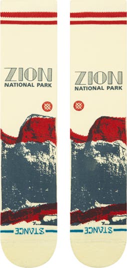 Hear the outdoors calling the moment you slip on these combed-cotton blend socks featuring an image from Zion National Park.