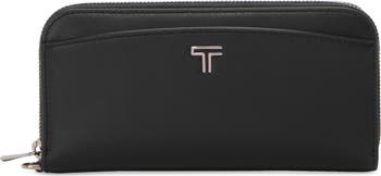 - Dual interior compartments with center zip-pocket divider; 8 card slots, 2 slip pockets; bill compartment