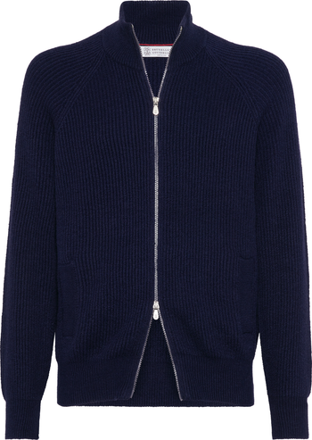 Brunello Cucinelli Zip-front cardigan, Main, color, Navy Blue