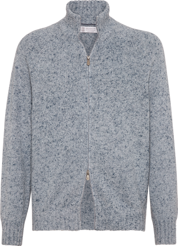 Noble cashmere fibers provide the yarn with warmth and lightness and enhance the season’s colors with the distinctive mottled effect of the flecked yarn.