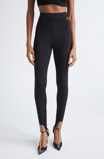 Quietly commanding, these stirrup leggings let the materials speak. Soft stretch jersey sets a smooth continuous line while a gleaming goldtone accent lends a touch of signature drama.