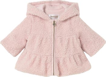 Long sleeved Hoodie. Hooded collar. Front, central zip fastening. Soft and smooth outer faux fur fabric. Decorative elements: appliqued ears motifs.