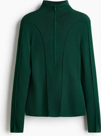 Fitted, long-sleeved top in a soft, fine knit with a turtle neck, concealed zip at the top and exposed seams at the front and down the sleeves.