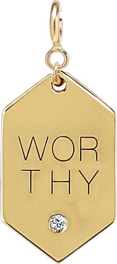 Remember your worth with this hexagon medallion charm accented by a teeny diamond and hanging off a spring-ring clasp.