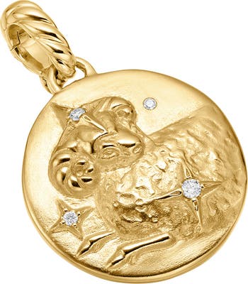 A constellation of prong-set diamonds enchants this zodiac pendant crafted from radiant 18-karat gold.