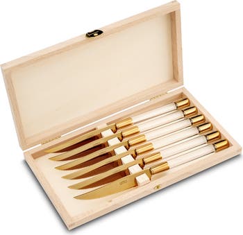 Crafted in France with precision and flair, Capdeco brings a modern sensibility to the art of tableware. Each piece blends vibrant design with everyday functionality, elevating every meal with refined, joyful style. The Conty Steak Knives, Set of 6 delivers sharp performance and elevated presentation. Each knife features a serrated stainless steel blade, chrome-plated bolster, and ergonomic handle for exceptional comfort and balance. Housed in a sleek case, this set brings both precision and sophistication to any table.
