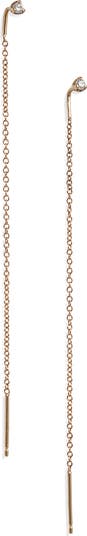 Delicate yet dramatic, these slender wires that thread through your lobes are crafted with two brilliant-cut diamonds set in14-karat gold.