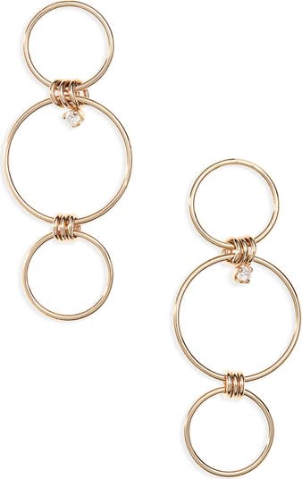 Everyday earrings get light-catching shine and elegant movement from three 14-karat gold hoops punctuated with a dangling white diamond.