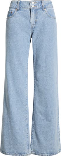 Rock an easy casual-cool vibe in these low-rise nonstretch jeans made in faded wash and finished with straight legs.