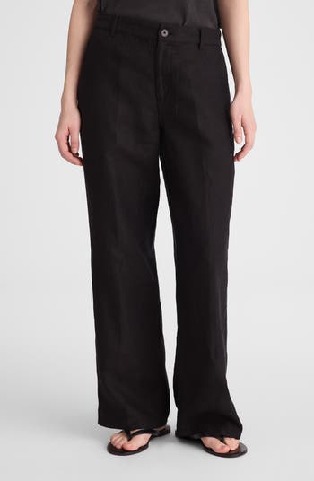 Crafted from 100% linen, these straight-leg pants have a relaxed fit through the hips and a high rise with an elasticized back waist for extra comfort. Complete with slanted front pockets and patch back pockets, you can easily style these up or down—wearing from the office to your next vacation.