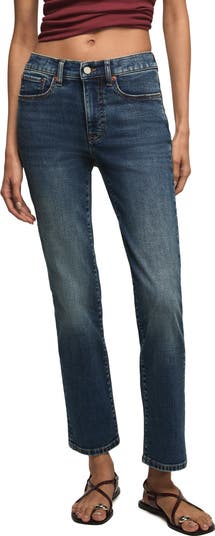 Classically cool, these high-waist jeans are made in a faded indigo wash and finished with straight ankle-grazing hems.