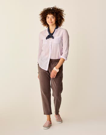 Put a bounce in your step with the casual comfort and competence of the Zoe. This easy pull-on pant with elastic waistband with draw cord is ready for whatever your day demands.