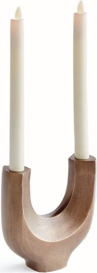 Sculpture or Candelabra? How about both! This sleek, modern candelabra is made to hold two tapers. A handsome, substantial accent for the contemporary space.