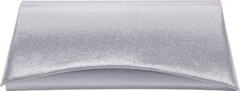 A geometric silhouette and slender profile underscore the contemporary appeal of an evening-ready clutch fitted with an optional chain strap for hands-free carry.