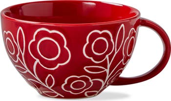 Introducing the Zoey Flower Latte Mug, a stunning addition to your everyday drinkware collection. Crafted from high-quality red stoneware, this 14 oz mug is perfect for enjoying your favorite lattes, coffees, or teas. Its vibrant floral design adds a touch of charm and elegance to your morning routine, making each sip a delightful experience. The durable stoneware construction ensures that this mug is not only beautiful but also practical, as it is dishwasher safe for easy cleaning. Elevate your beverage experience with the Zoey Flower Latte Mug, where style meets functionality.
