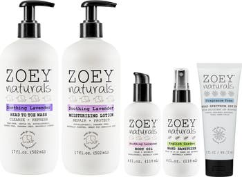 Create a soothing daily routine with this thoughtfully curated set designed to cleanse, hydrate, nourish, and protect delicate skin. Featuring calming lavender essentials along with everyday protection, this bundle supports a complete care routine from bath time to outdoor play. Set Includes: | Soothing Lavender Head To Toe Wash: A gentle cleanser designed for both hair and body, leaving skin clean, soft, and lightly scented with calming lavender. Tear-free, gentle pH, sulfate-free, plant-based and naturally scented. | Soothing Lavender Moisturizing Lotion: A lightweight daily moisturizer infused with calming lavender to help keep skin soft, smooth, and hydrated throughout the day. | Soothing Lavender Body Butter: A rich, nourishing body butter infused with calming lavender to deeply hydrate and soften dry skin. | SPF 50 Sunscreen: Broad spectrum mineral sunscreen providing reliable daily sun protection for sensitive skin.
