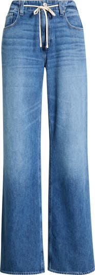 A tie at the high waist adds weekend-ready style to full-length, casual wide-leg jeans made from soft, nicely draped nonstretch denim.