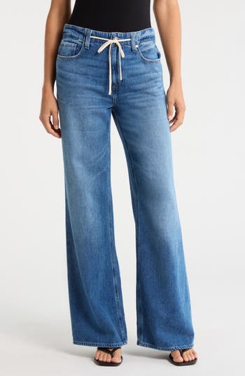 A tie at the high waist adds weekend-ready style to full-length, casual wide-leg jeans made from soft, nicely draped nonstretch denim.