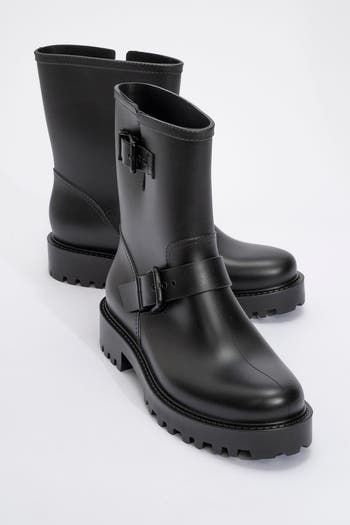 A chic, durable rain boot designed to elevate wet-weather outfits with modern styling