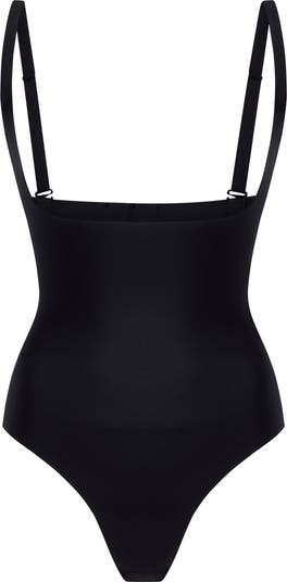 An open bust ensures this bodysuit won't peek out, even in your most plunging looks while still offering the signature support you crave. It's made with all the important details like raw-cut edges, convertible straps and zoned compression.