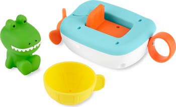 This action-packed bath toy has a wind-up airboat, croc squirtie and a removable fan that doubles as a water strainer.